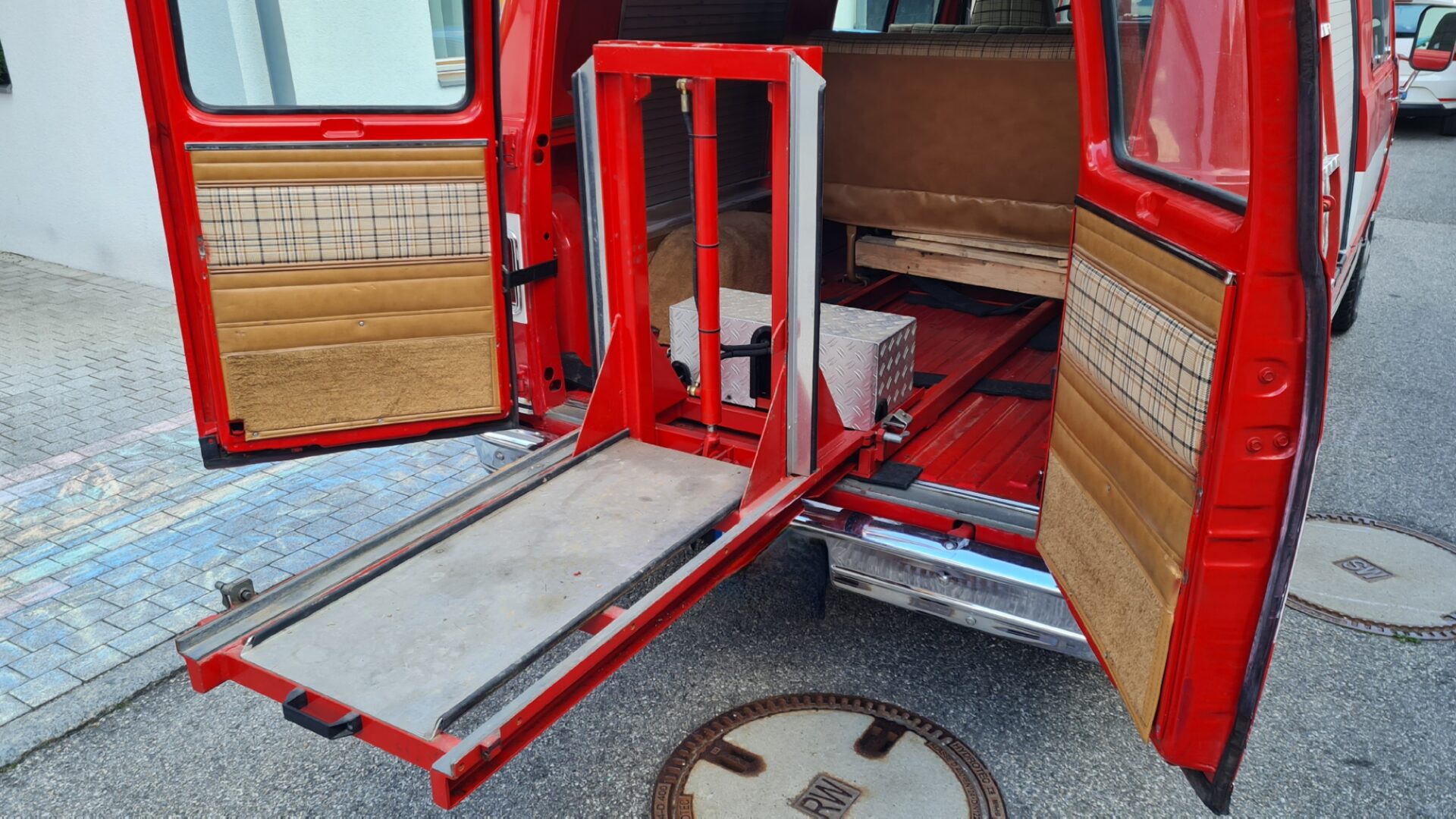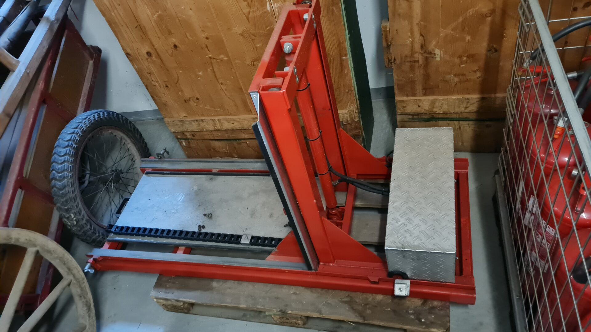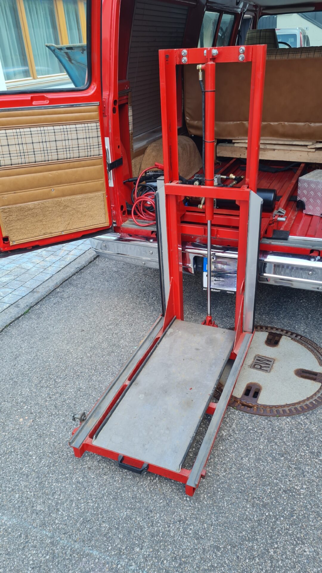 Ausziehbare Hubplattform für Tragkraftspritze mit 12V Kompakt-Hydraulik.