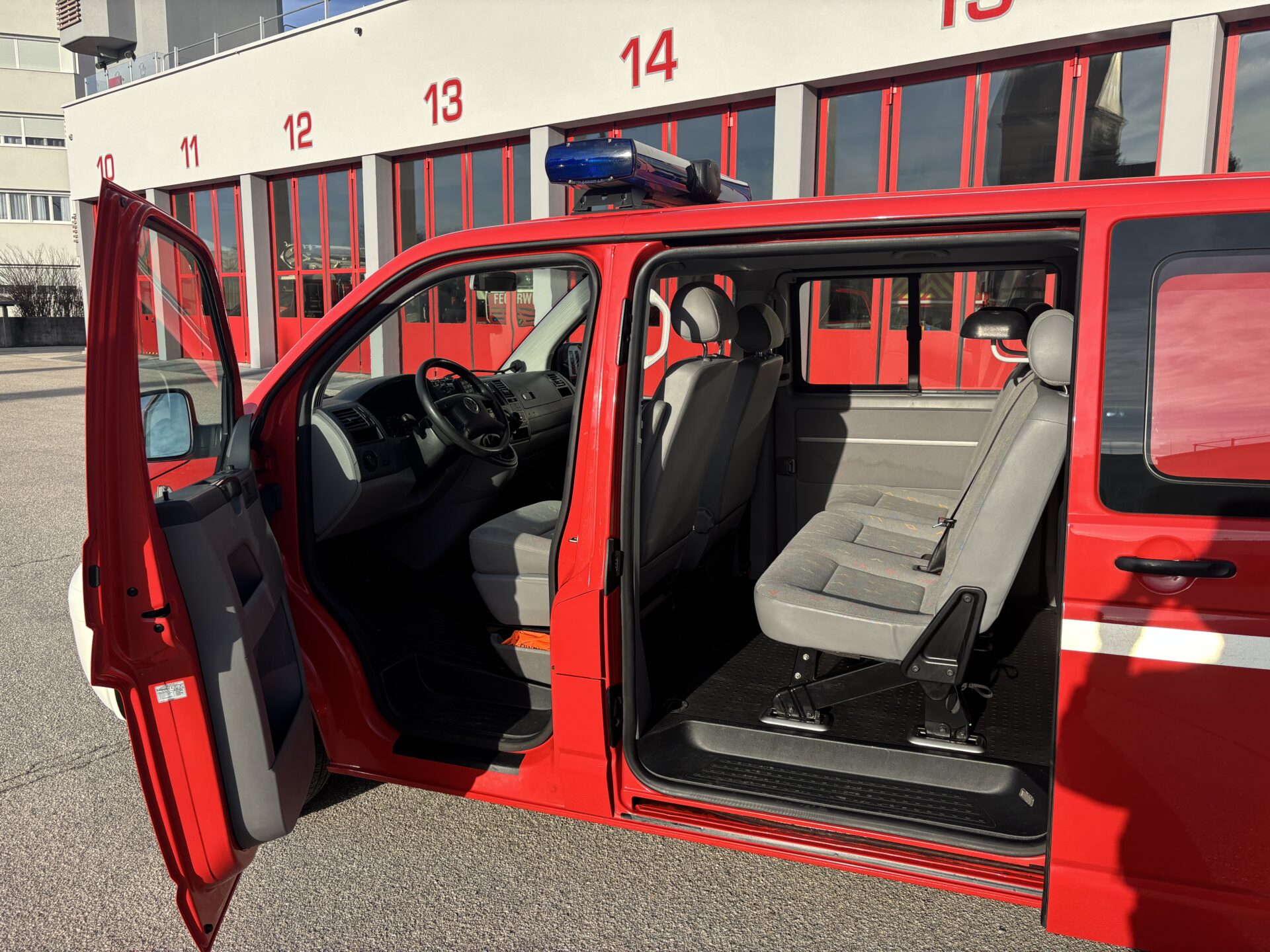 Im Mannschaftsraum ist in der Mitte eine Konsole variabel zum Einbauen, die zugleich als kleiner Arbeitstisch im Fahrzeug genutzt werden kann.